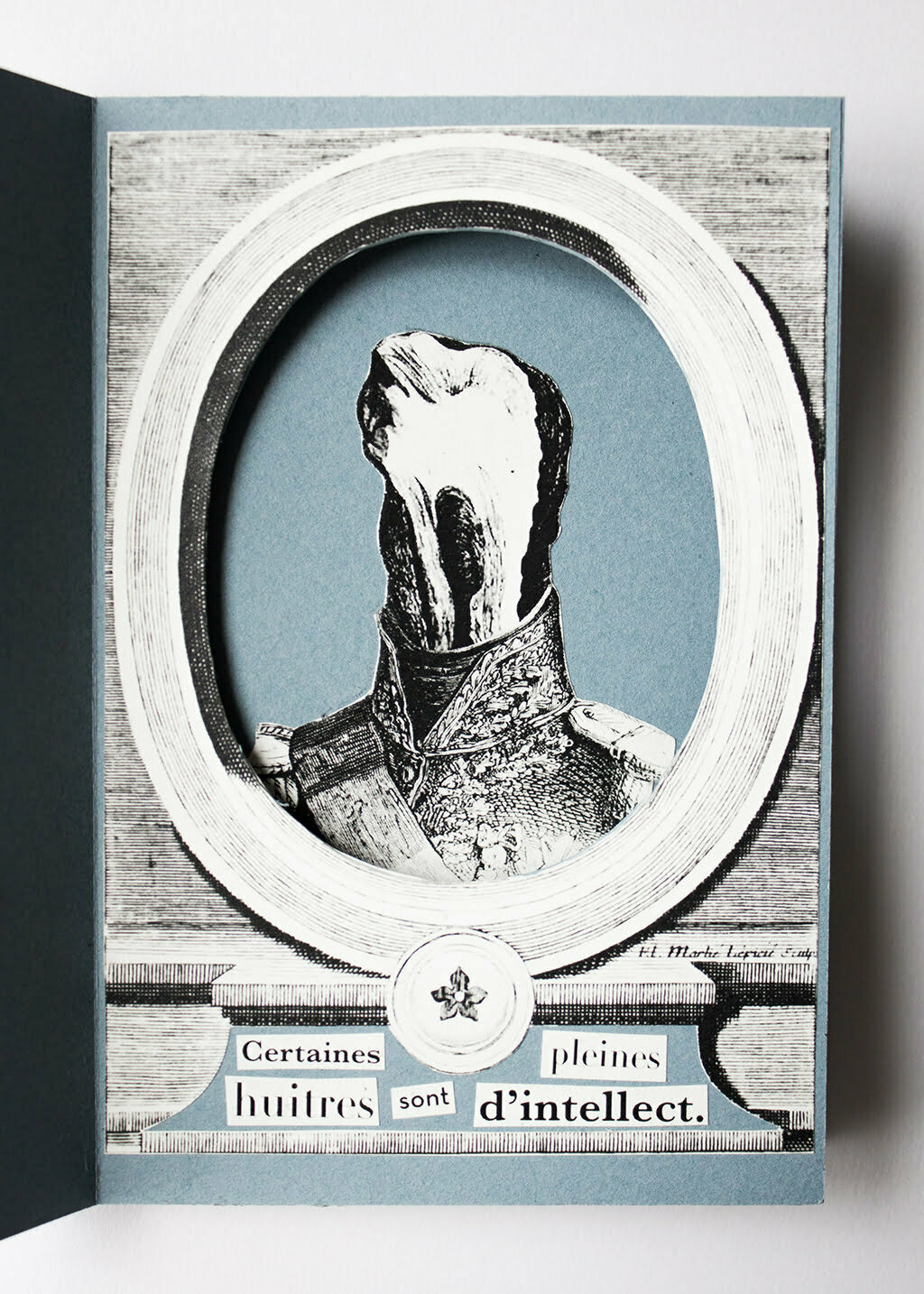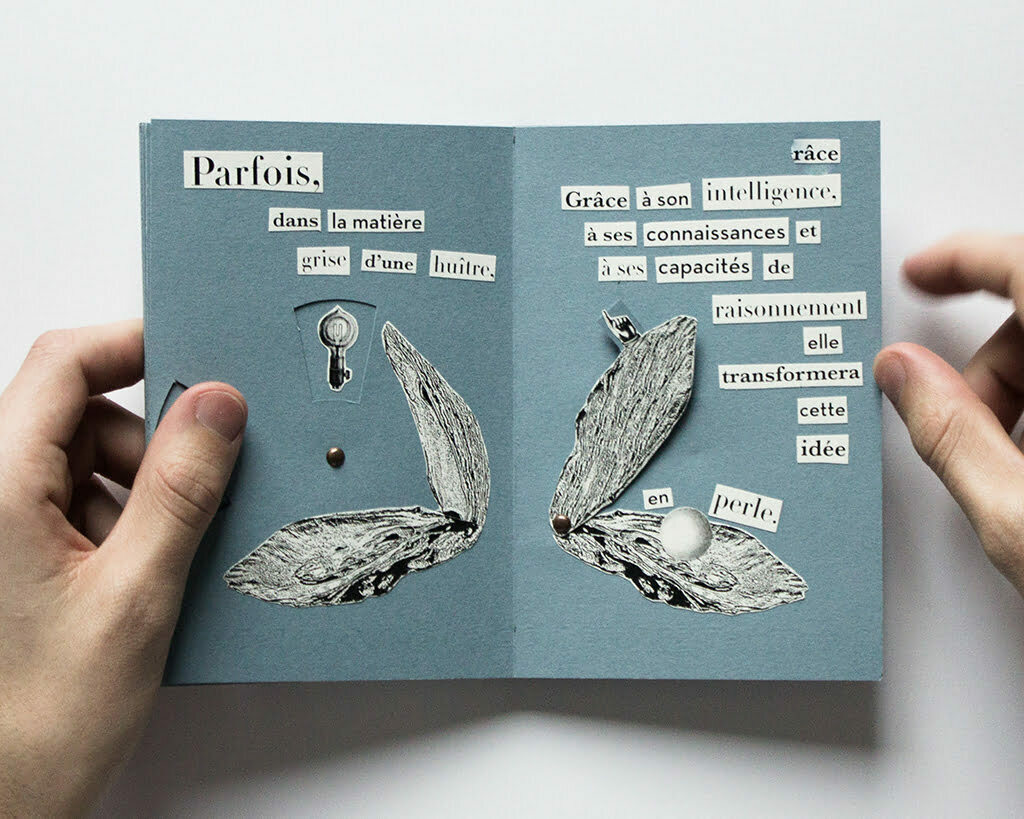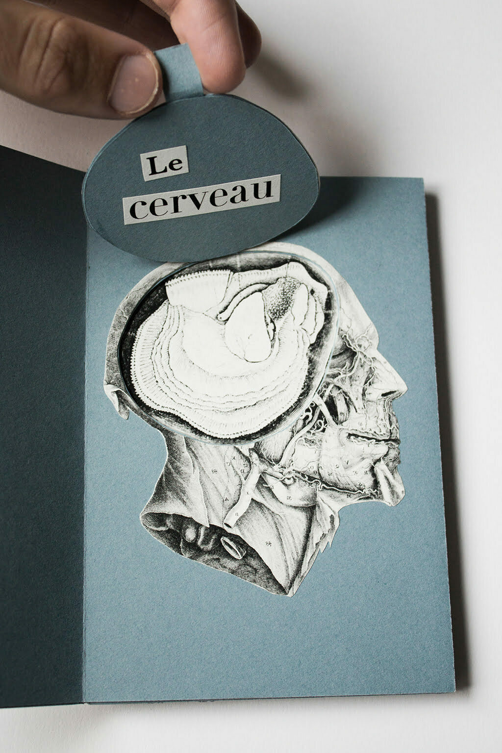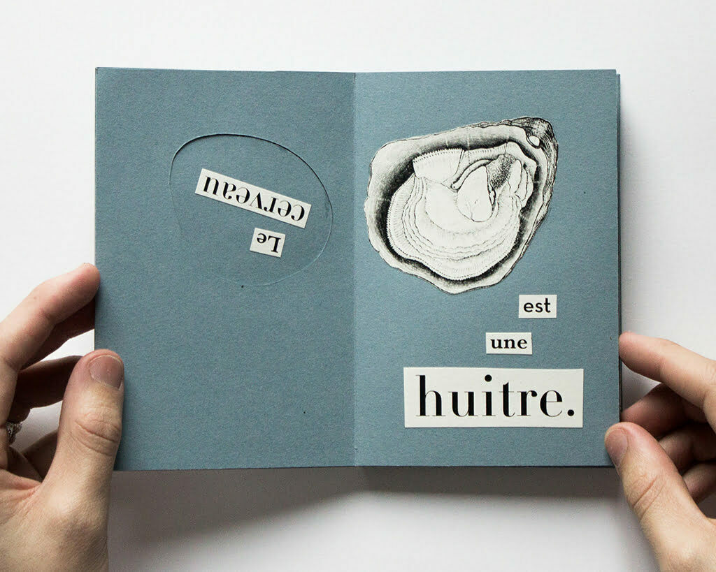 Petite leçon d’anatomie surréaliste.Livret pop-up mettant en scène l’idée que le cerveau est une huitre.