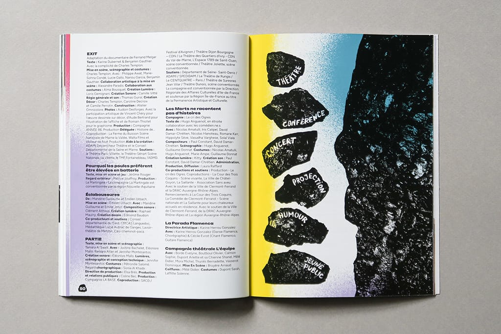 Déclinaisons du visuel sur les bâches devant le théâtre, sur le programme de saison, etc.